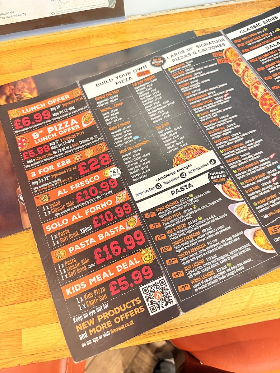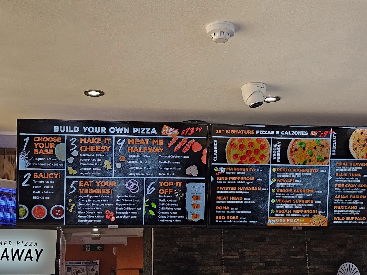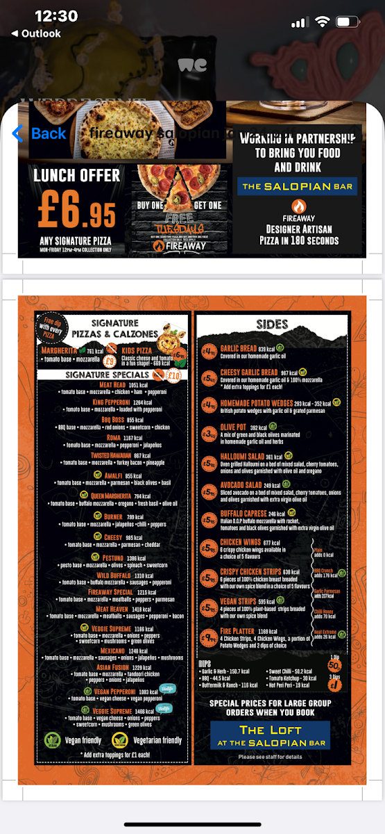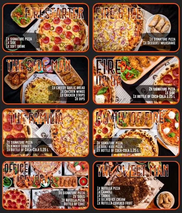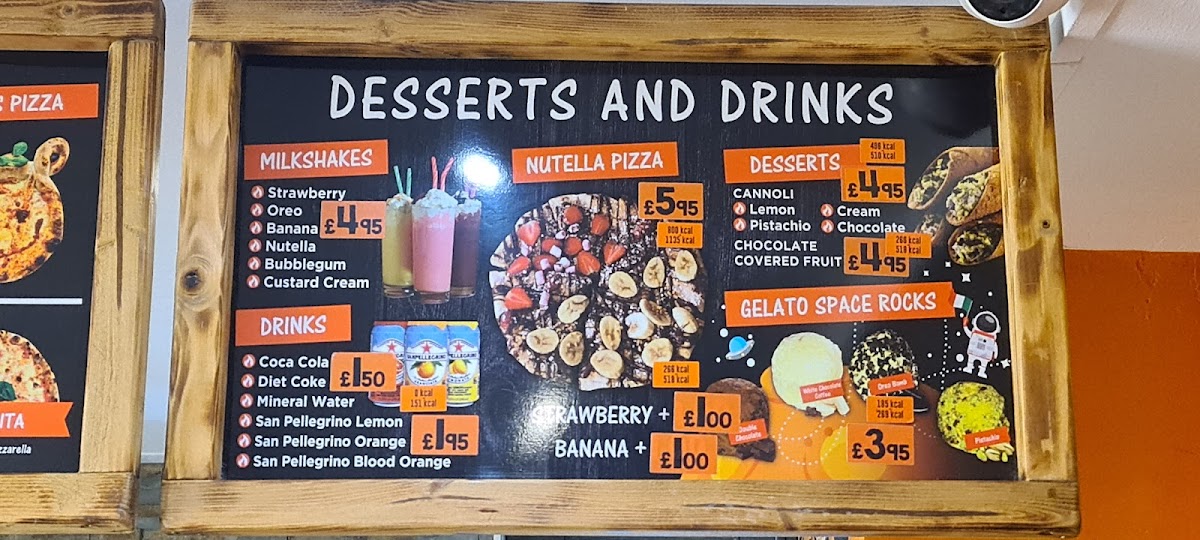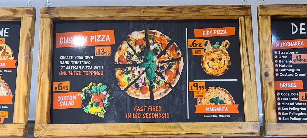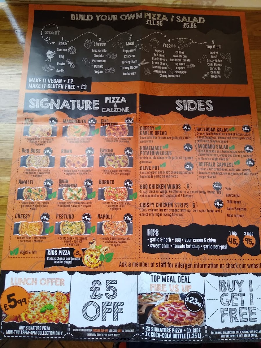 Fireaway Pizza Shrewsbury offers a diverse and tantalizing menu, perfect for pizza lovers and those seeking a variety of sides and drinks. Their Large 12" Signature Pizzas & Calzones feature favorites like the Margherita, Meat Head, King Pepperoni, and the indulgent BBQ Boss. For those craving something unique, the Roma and Meat Heaven pizzas provide bold and savory options. Accompany your pizza with classic sides such as Garlic Bread, Cheesy Garlic Bread, or the hearty Homemade Potato Wedges. For a fresh touch, try the Halloumi Salad or Avocado Salad. The Kids Pizza is perfect for younger guests. If you're looking for something extra, the Chocolate Covered Fruit makes a sweet ending. To quench your thirst, Fireaway offers a range of refreshing beverages, including Coca Cola, San Pellegrino in various flavors like Lemon, Orange, and Blood Orange, along with milkshakes like Strawberry, Oreo, and Nutella. Whether you're in the mood for a classic Margherita or a bold Asian Fusion specialty pizza, Fireaway Pizza offers a satisfying meal for every palate.